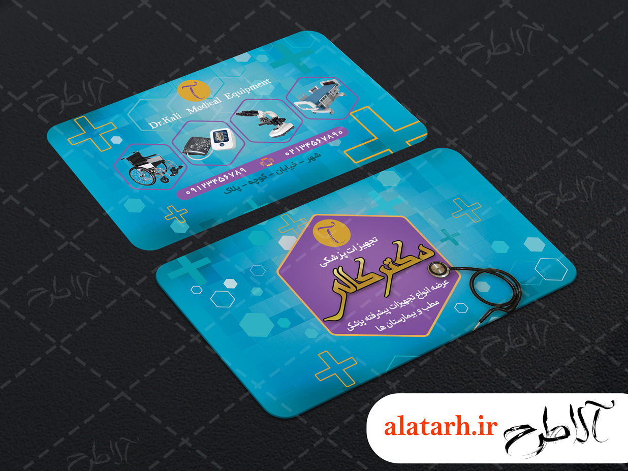 طرح لایه باز کارت ویزیت تجهیزات پزشکی بصورت کاملا لایه باز طراحی شده است.